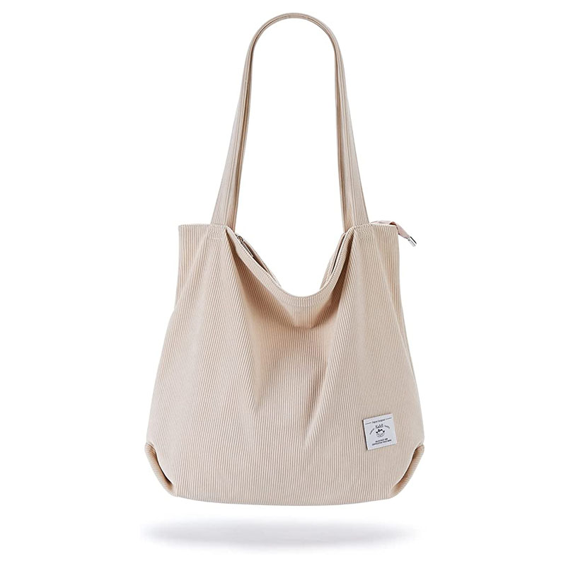 · ✔ Stuth CÀILEACHD: Poca tote mòr air a dhèanamh le stuth corduroy làidir, le strap ghualainn ath-neartaichte airson a ghiùlan agus gun a bhith furasta a bhriseadh. Chan e a-mhàin seasmhach, bog agus càirdeil don chraiceann, ach a ghabhas nighe agus furasta a ghlanadh, tha e na phoca fasanta a ghabhas a mhaidseadh le aodach sam bith agus nach tèid a-mach à stoidhle gu bràth.